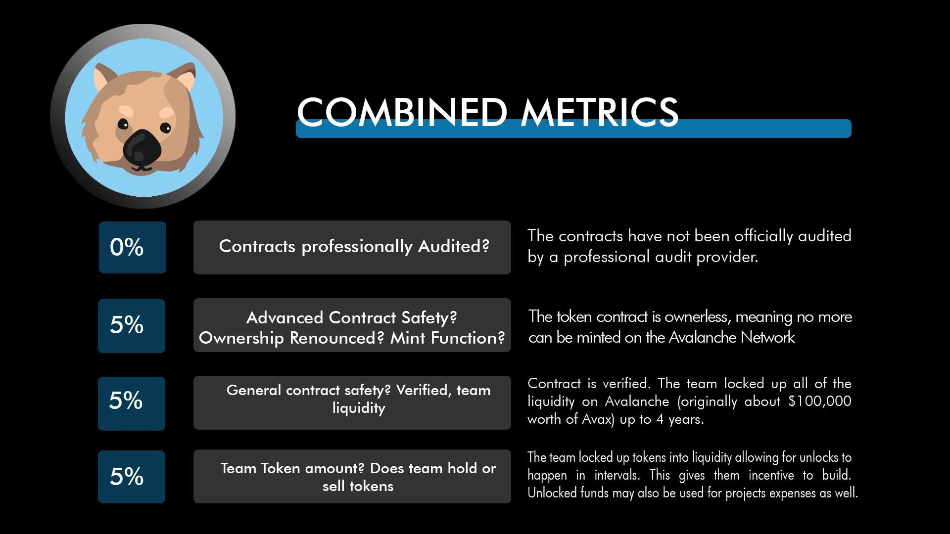 Is the contract verified so everyone can read the code? Does the team of the project hold all of the liquidity? Has the contract creator deployed many tokens on avalanche? This is all considered in this metric.